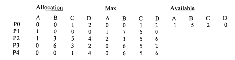 a) Is the system in a safe state? Use Banker algorithm. If yes give the sequence.
